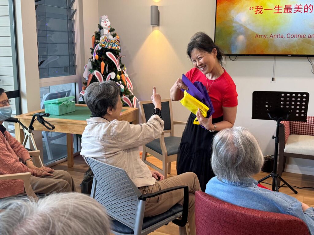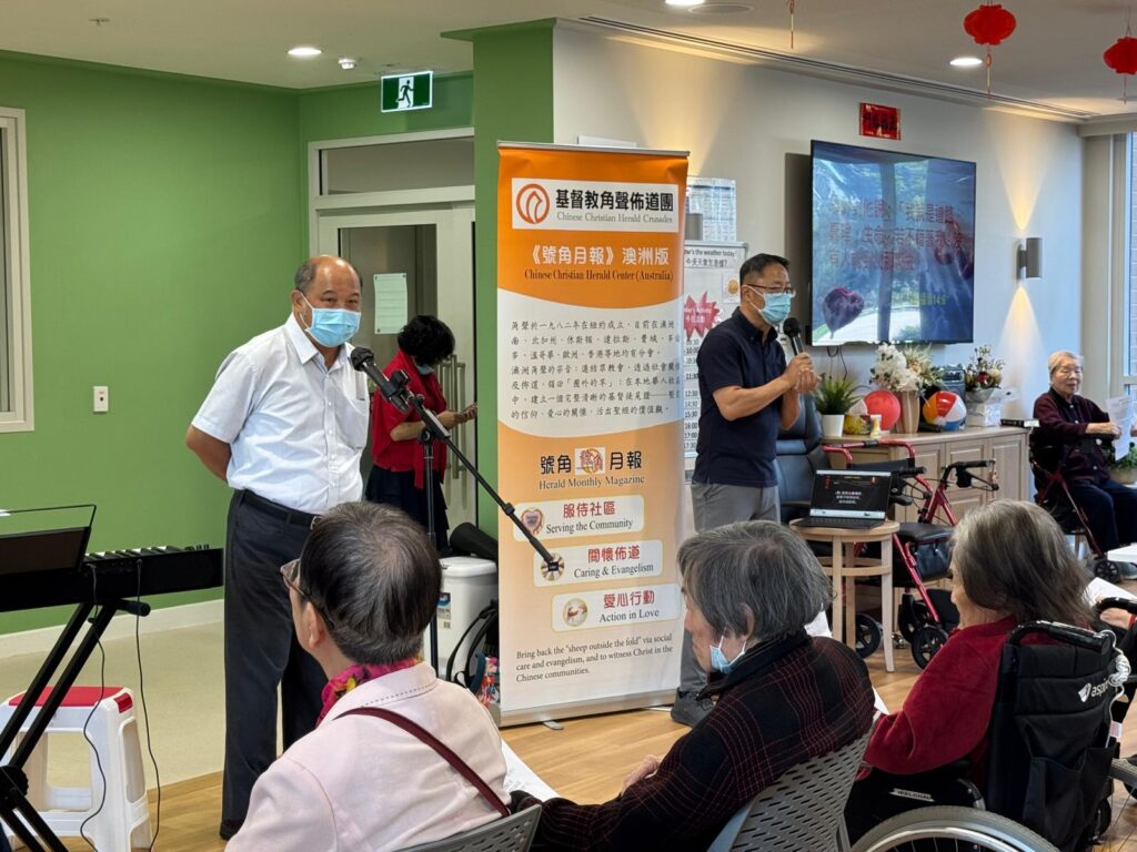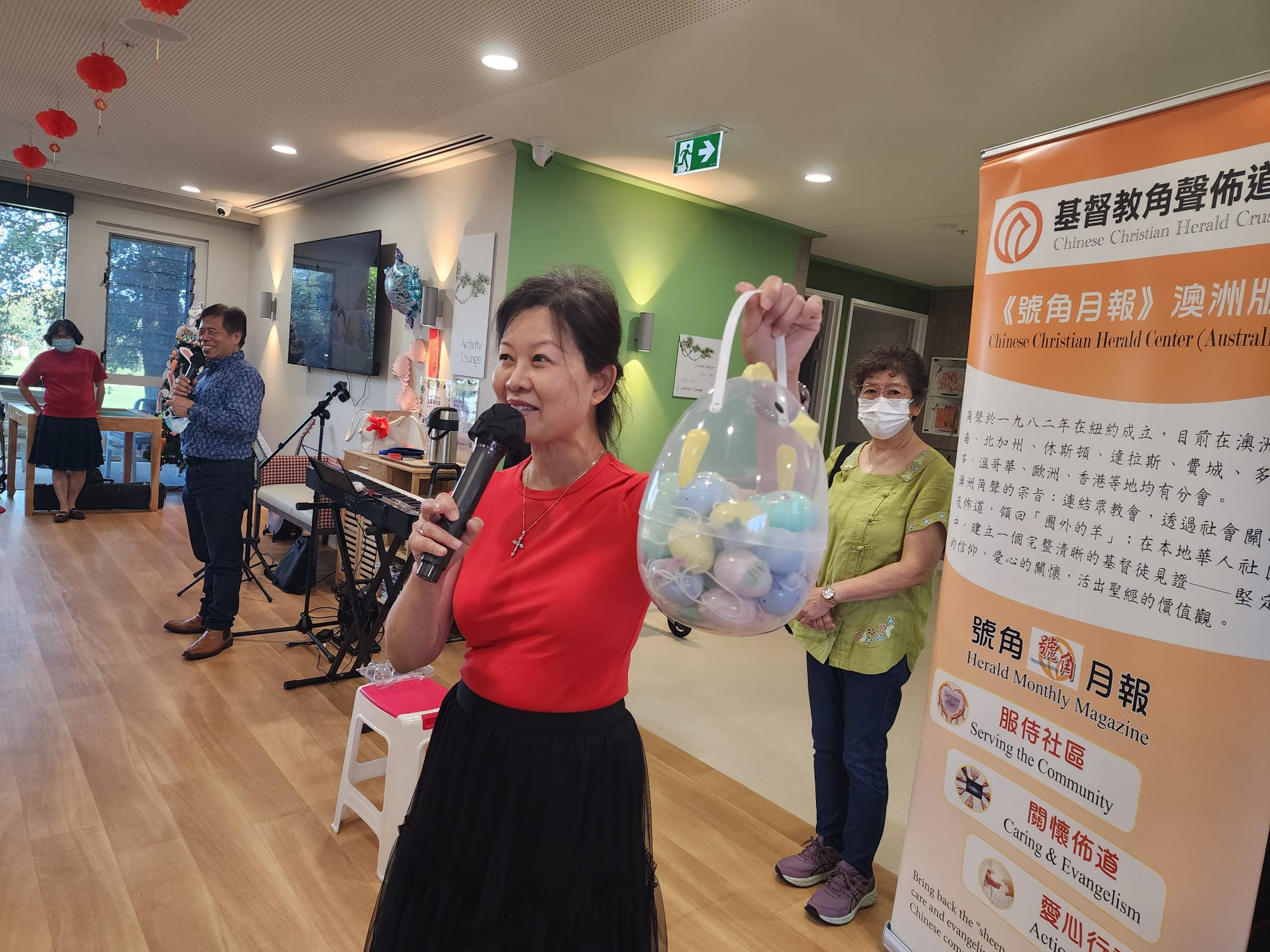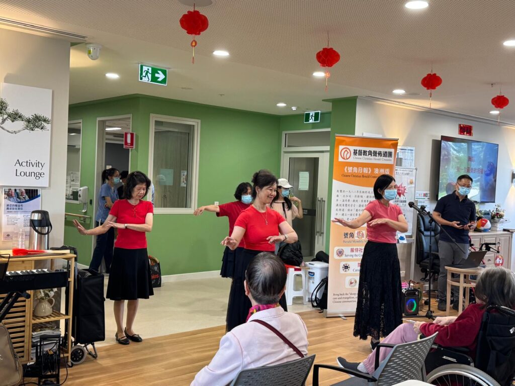 2026角聲愛鄰社復活節養老院報佳音活動從CASS愛斯貴高齡頤養院開始。這次參加報佳音活動的弟兄姊妹主要是來自北雪梨華人宣道會。Amy和Daniel帶來熱身遊戲【喜尋彩蛋樂融融(新生命)】,精心製作復活蛋作為問答遊戲禮物,讓長者們認識耶穌受難的事實資料。然後Brenda和Susan獻唱福音粵曲【客西馬尼情】、【綿綿十架恩】和【十架情深】,長者們都聽出耳油。之後Amy和Artic分別用鋼琴和二胡,演奏【讚美之泉】二重奏,悅耳動聽。再加上Daniel共三人又彈又獻唱了詩歌【愛是不保留】和【我的救贖者活著】,打動人心。梁錦洪牧師分享的復活節福音信息,來自約翰福音14:6 「我就是道路、真理、生命,若不藉著我,沒有人能到父那裏去。」鼓勵長者們認識和接受主耶穌。Amy和另外三位姊妹Anita,Connie和Kate壓軸演出了一支舞蹈【我一生最美的祝福】,帶動全場氣氛。最後在一首輕鬆熱鬧的詩歌音樂陪伴下,團隊為長者們送上復活節禮物和從神而來的祝福。