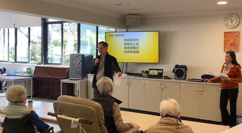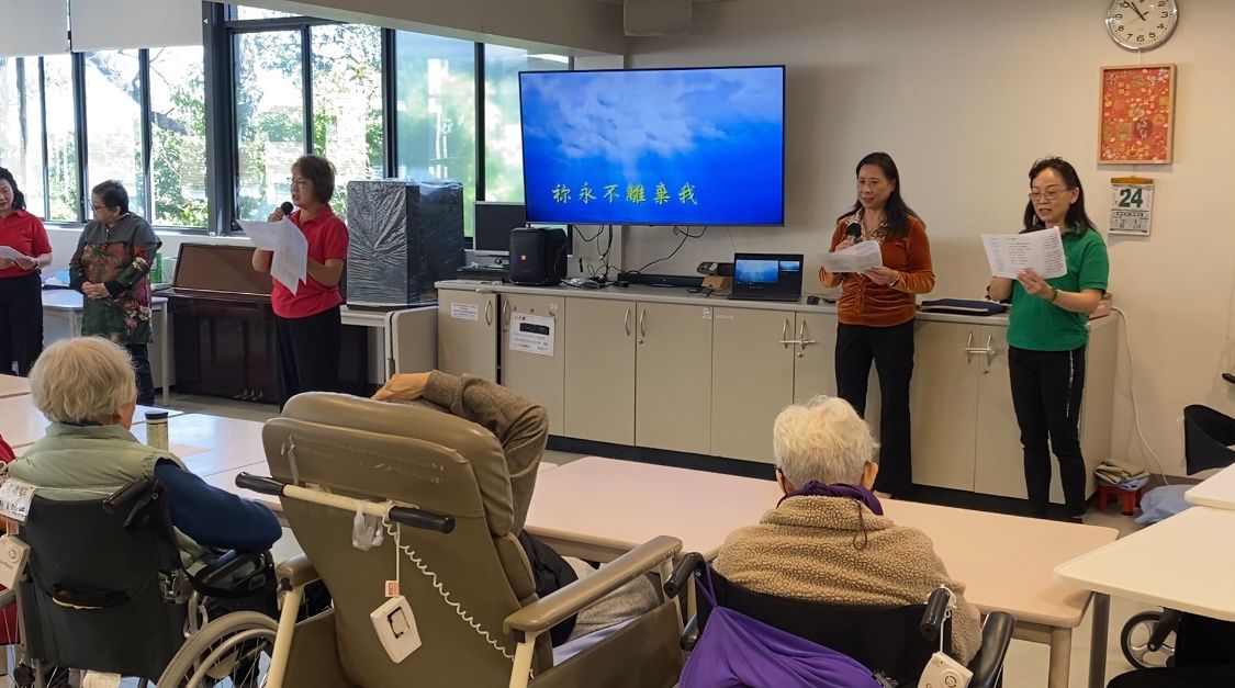 愛鄰社聯合百思道華人公理會的弟兄姊妹,一行十人,早早來到周藻泮養老院,為院內長者獻上精心準備的讚美操、詩歌敬拜,還有周振成牧師的信息分享。當日活動順利舉行。老人家雖多坐在輪椅上,卻仍舉起雙手隨着音樂擺動,投入在讚美操的節奏裡,氣氛溫馨喜樂。周牧師的信息亦深具啟發,他分享到:中秋是中國人感恩秋收的日子,更提醒我們萬物都是神的創造—太陽與月亮皆彰顯祂的榮耀。願福音的種子能在長者心中落地生根。