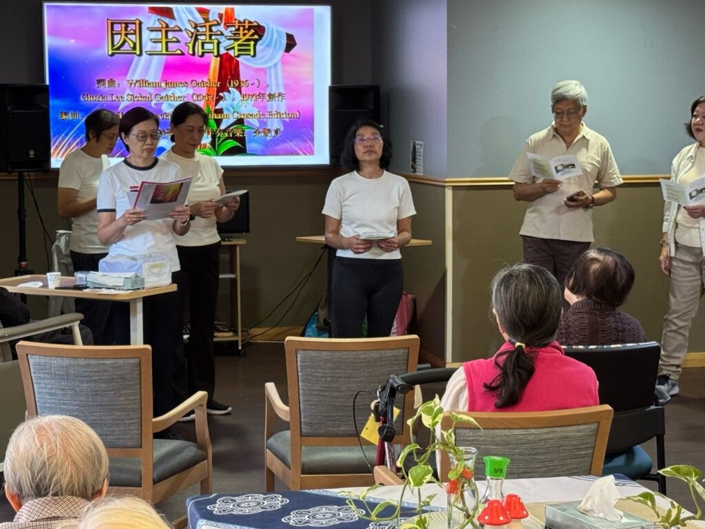 2025年4月14日角聲佈道團澳洲分會聯合FiveDock雪梨華人福音教會的弟兄姐妹到Ashfield的光達養老院探訪並帶來復活節訊息。由陳鈞智牧師禱告後十點準時開始我們準備好的節目,首先由Day姐妹帶領眾弟兄姐妹來一個讚美操,長者們都跟著音樂一起做起了讚美操,反應非常熱烈。跟著帶來了兩首歌:「神是愛」和「因祂活著」。陳鈞智牧師在復活節訊息中帶出了神的救恩,言簡意賅,道出了復活節的由來。有三位婆婆舉手說願意信靠主耶穌,將來主再來時也一同復活,這是多麼好的見證。最後弟兄姐妺們唱出「活出愛」作為結束,並向長者派出帶有號角月報、心意卡、小手巾和護膚霜和小餅乾的禮品袋,探訪活動在歡聲笑語中結束,感謝神的恩典,榮耀歸於神,大家期望下次有機會再來探望光達的老人們。